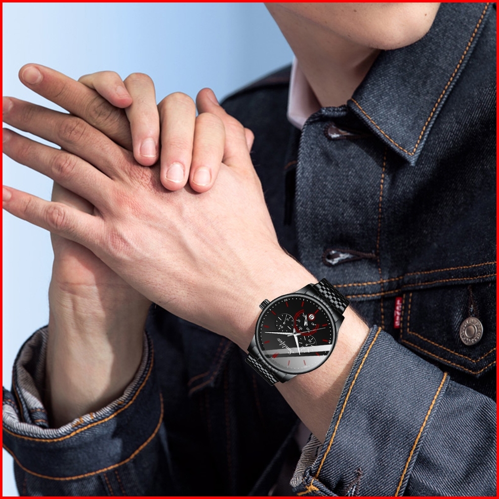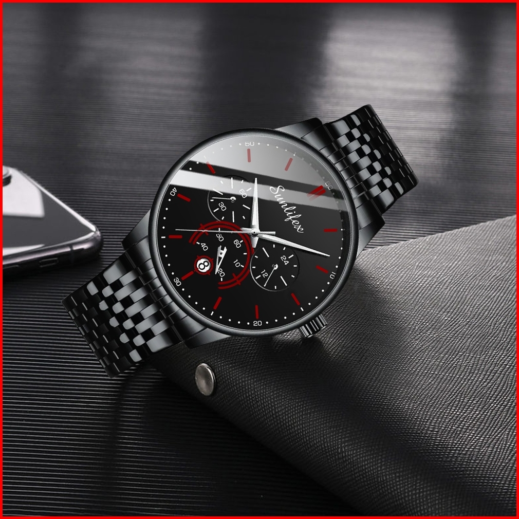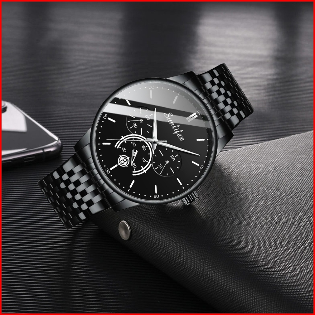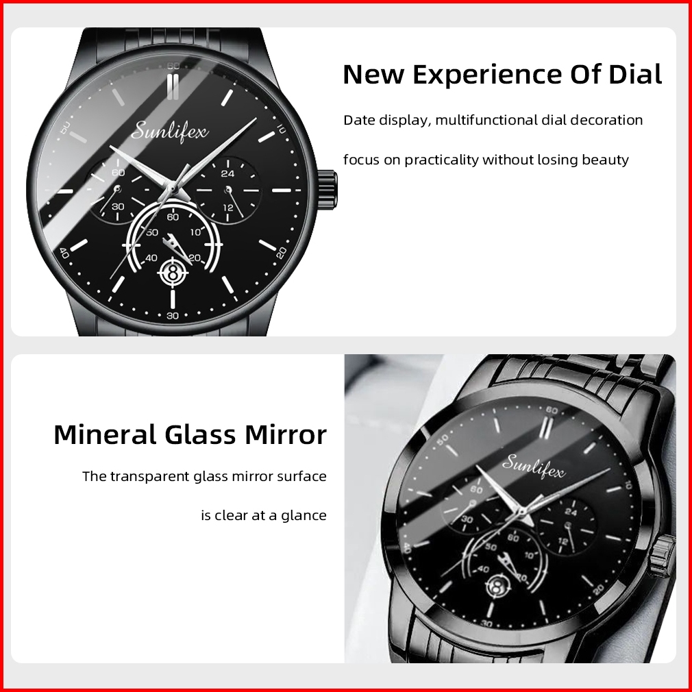 Sunlifex 9007 Jam Tangan Pria Fashion Gaya Kasual Safety Lipat Gesper Jam Tangan Pria Original Tali Stainless Steel Kuar