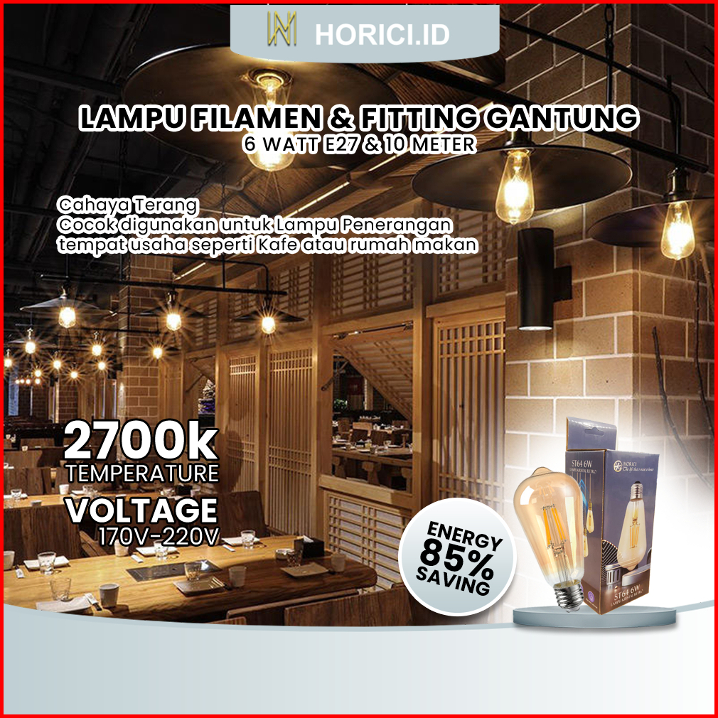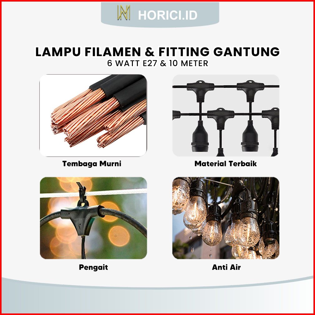 6 Watt 10 Pcs Lampu Filamen Fitting Gantung 10 Meter Rata Ud Lampu Cafe Bar Aesthetic Tahan Air
