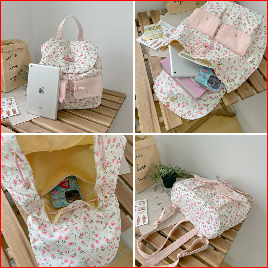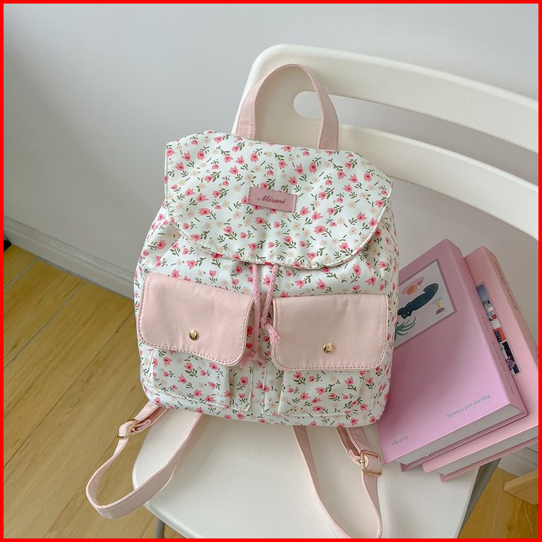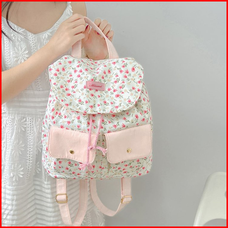 Mismi Oviya Bag Tas Ransel Wanita Stylish Korean Flower School Backpack Perempuan Trendy - 42o