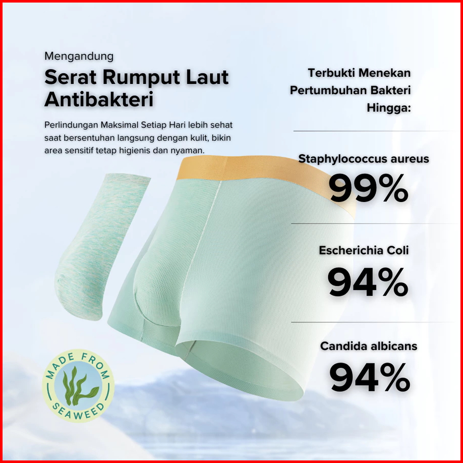 Tulandut Celana Dalam Pria Seaweed Antibakteri 7a Serat Rumput Laut Premium Boxer Adem Quick-dry Tech 81206 Eco Friendly
