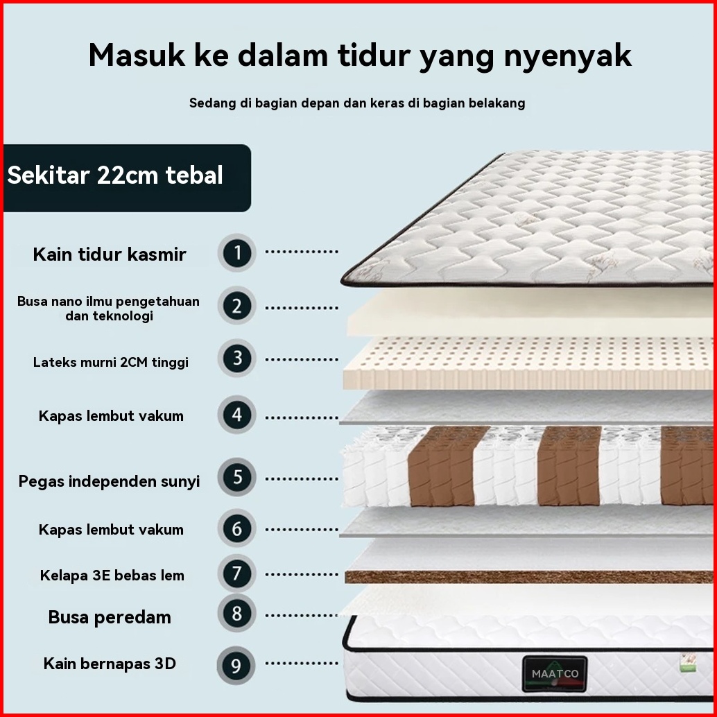 Kasur Spring Bed 20cm - Pegas Individu Anti Goyang Vacuum Pack Praktis Multi Ukuran