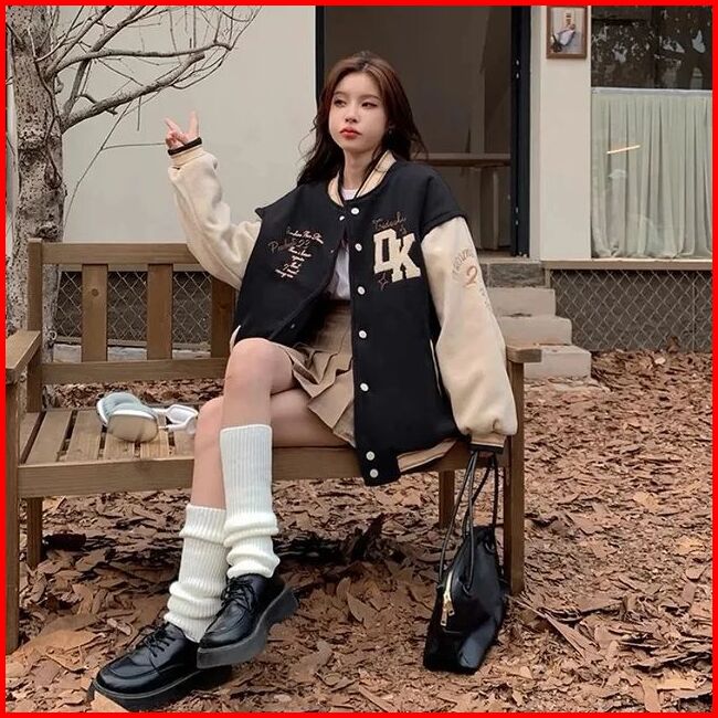 Jaket Varsity Baseball Korea Dewasa Oversize M-l-xl-xxl Sweater Pria Wanita Casual Varsity Bomber