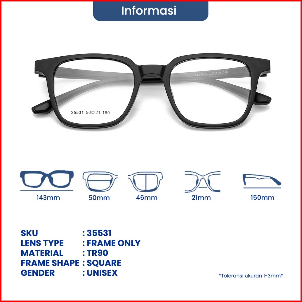 Eyekan Kacamata Kotak Anti Radiasi Bluelight Minus Photocromic Bluecromic Frame Tr90 Ringan Fashion Pria Wanita 35531