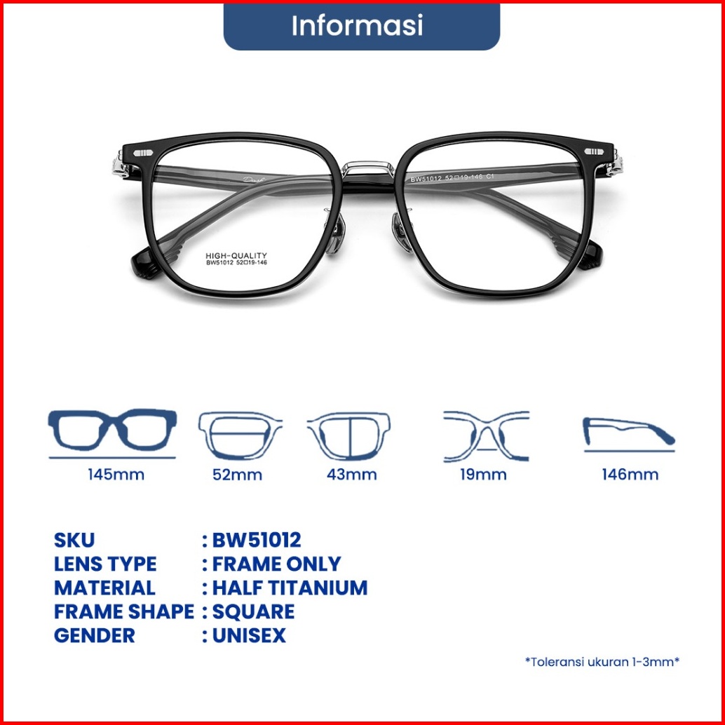 Eyekan Kacamata Titanium Anti Radiasi Minus Anti Bluelight Photocromic Bluecromic Frame Kotak Fashion Pria Wanita Bw5101