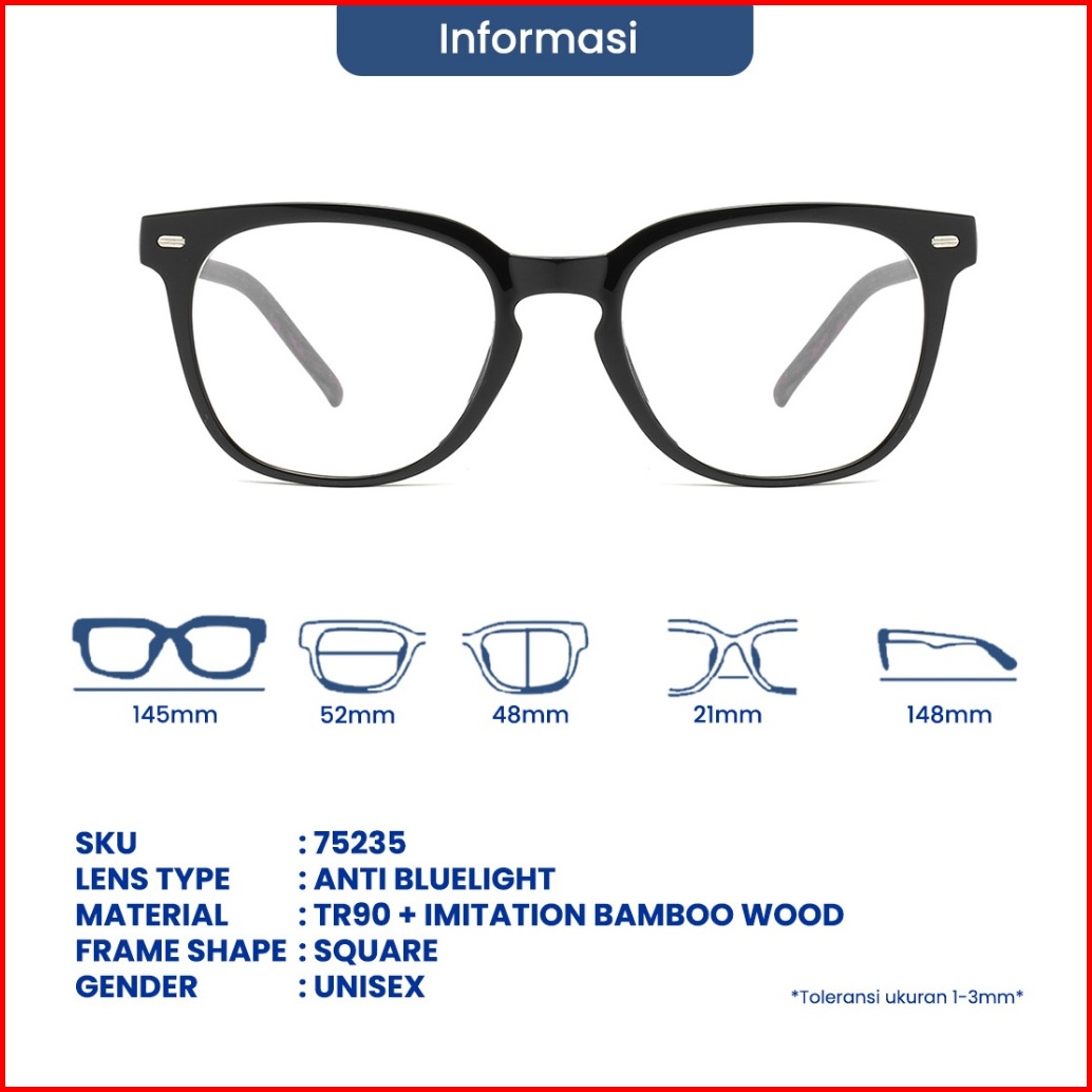 Eyekan Kacamata Kotak Anti Radiasi Minus Anti Bluelight Photocromic Bluecromic Frame Kayu Tr90 Geometric Pria Wanita 752