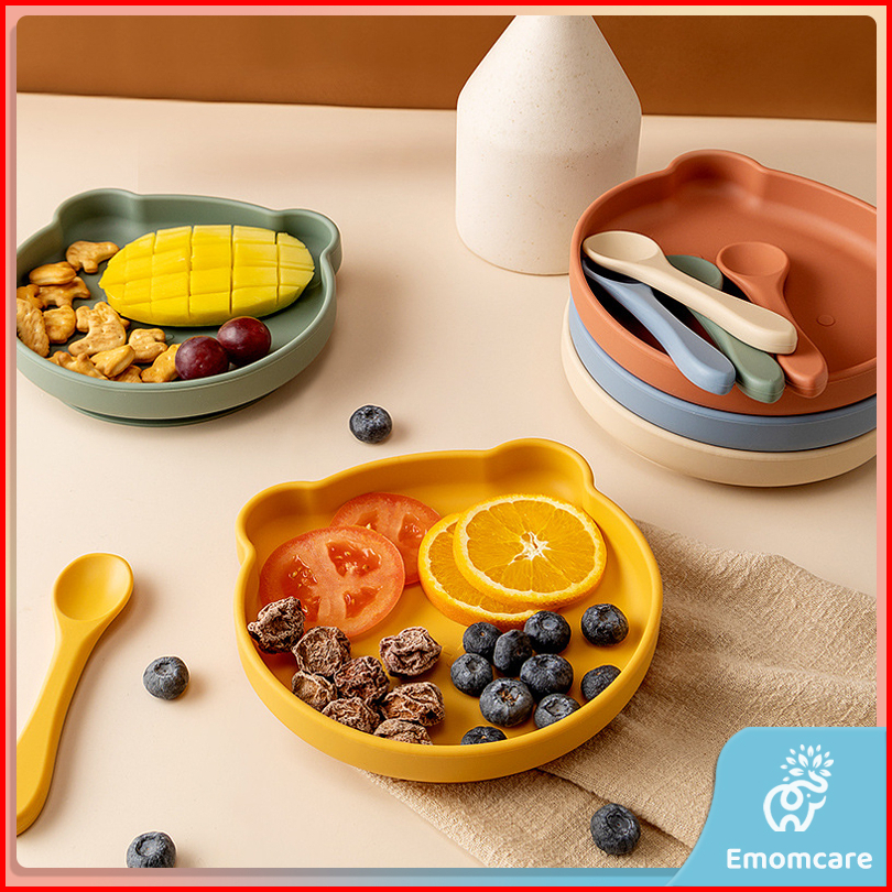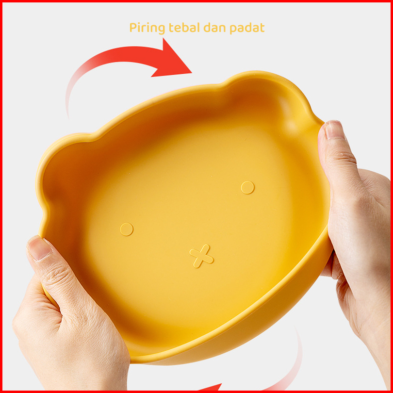 Piring Silikon Bayi Baby Silicone Plate Suction Bear Alat Mpasi Anak Piring Silikon Beruang Anti Tumpah