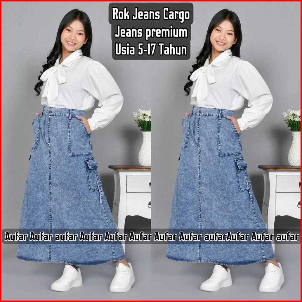 Rok Jeans Cargo Anak Perempuan 6-16 Tahun Rok Panjang Anak Cewe