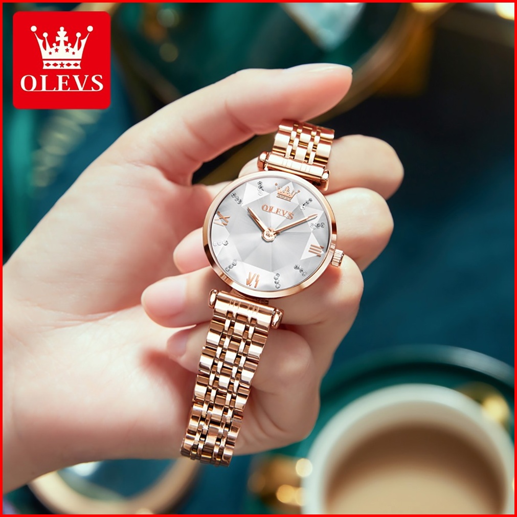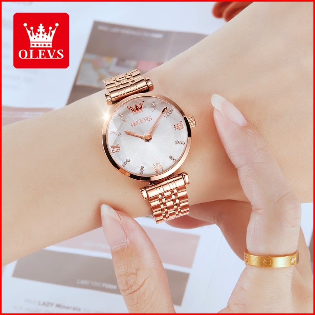 Olevs Jam Tangan Wanita Anti Air Original Elegan Fashion Aesthetic Rose Stainless Steel Terbaru Quartz Women Watch Set M