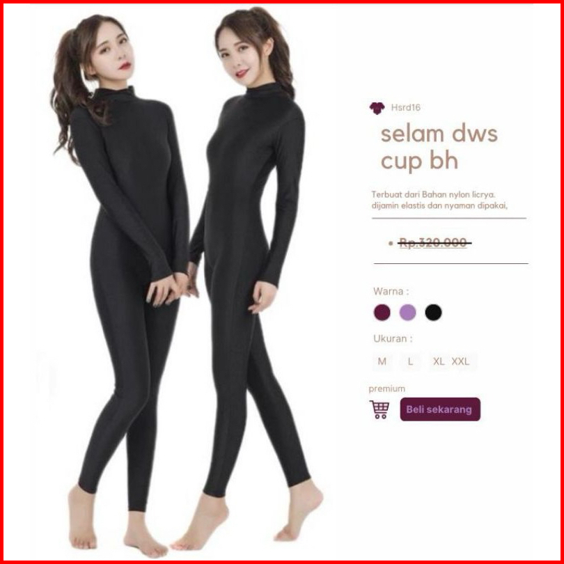 Baju Renang Diving Wanita Dewasa - Full Body Lengan Panjang Cup-bh Uv Protection Elastis