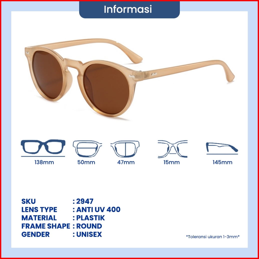 Eyekan Kacamata Hitam Minus Anti Uv400 Frame Bulat Sunglasses Anti Silau Fashion Pria Wanita 2947