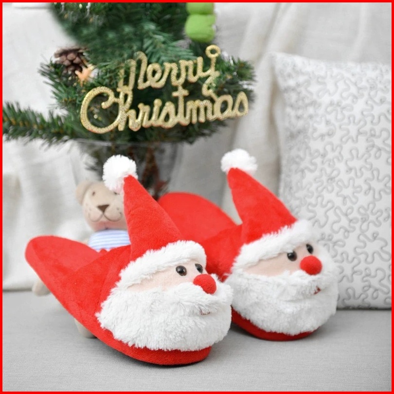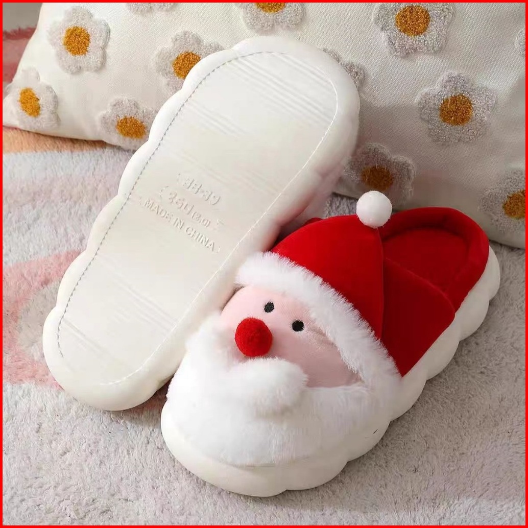 99khome Sandal Rumah Bulu Karakter Santa Rudolf Lucu Anti Slip Nyaman Indoor Karet Lembut K1285