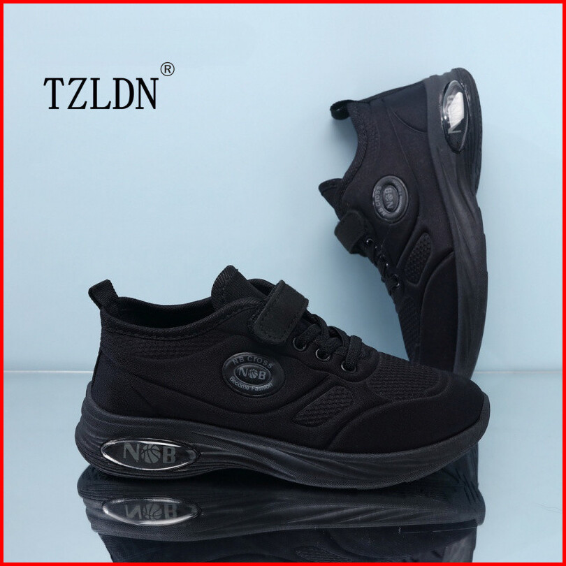 Tzldn Sepatu Sekolah Anak-anak Sepatu Kasual Hitam Murni