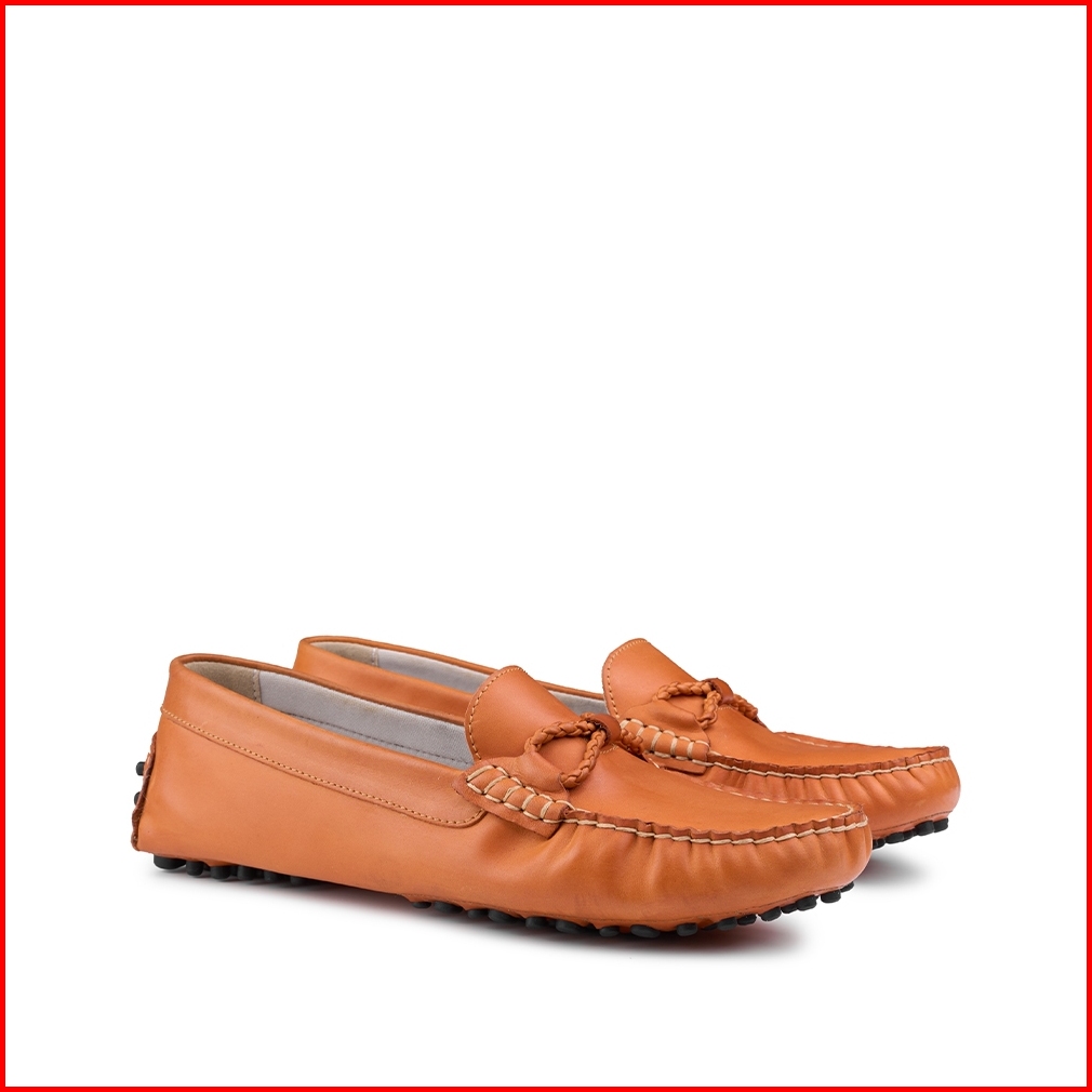 Prabu - Sepatu Kulit Mocassin Wanita Risma Orange