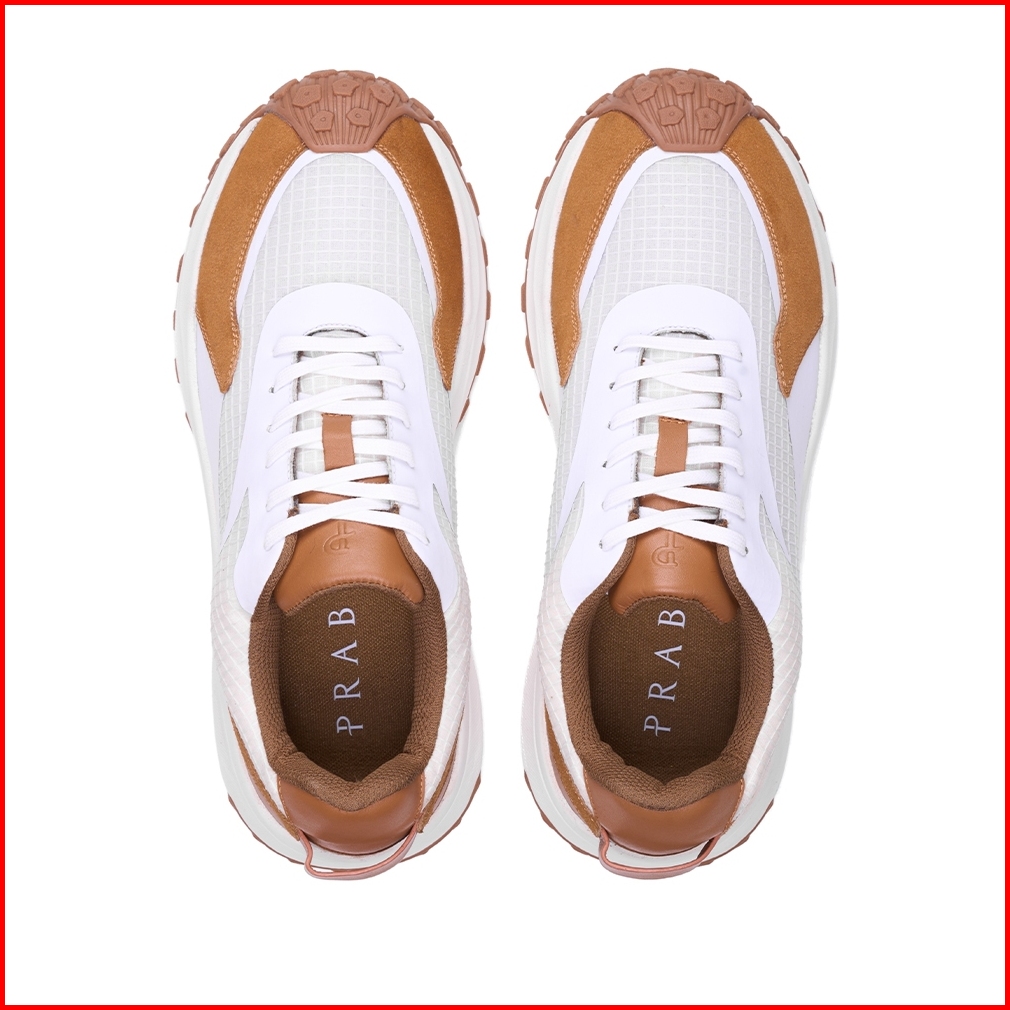Prabu - Bawana White Brown Sepatu Kulit Sneakers Pria Putih Cokelat