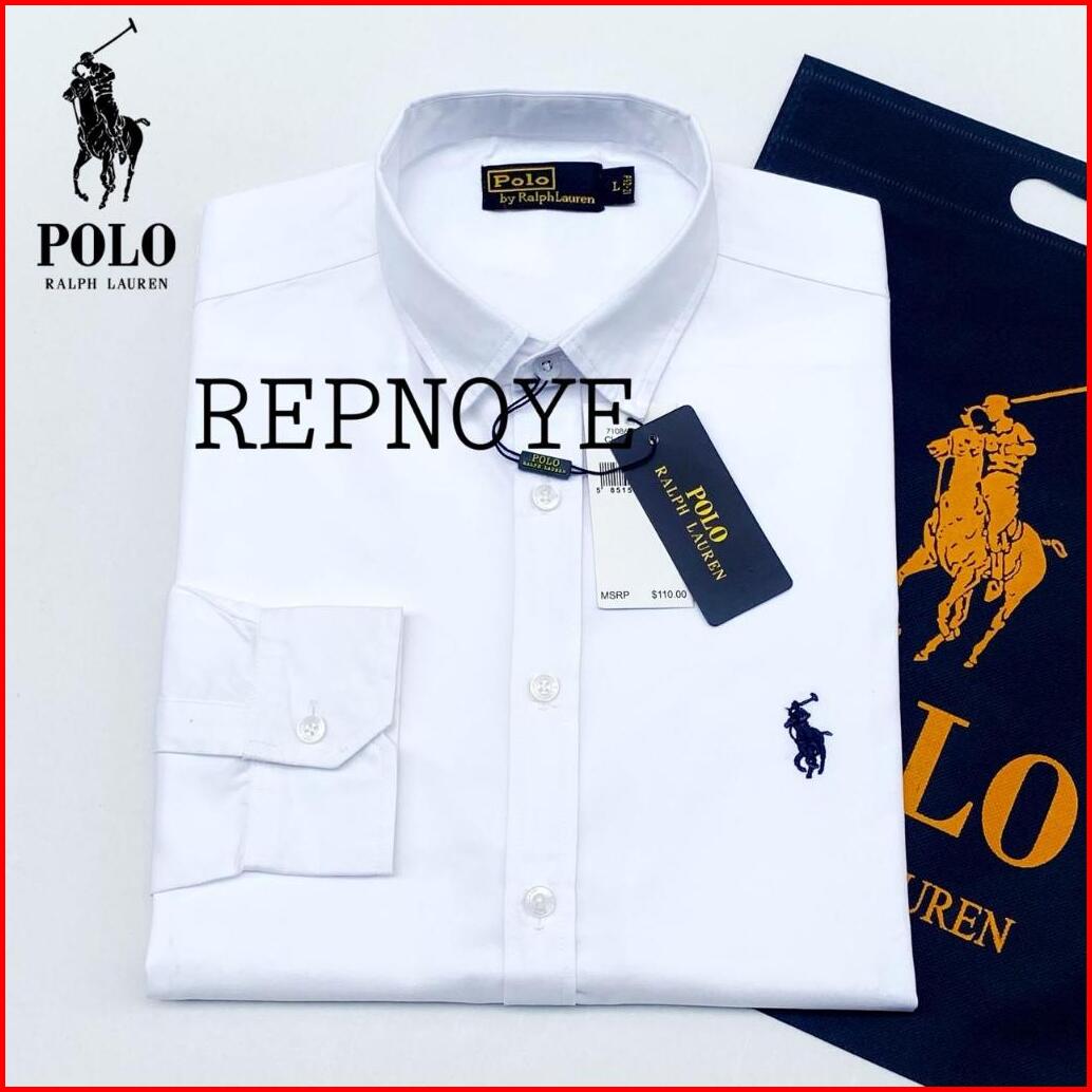 Repnoye Kemeja Pria Lengan Panjang Catton Twill Sueding Kemeja Polo S Putih Pria Long Sleeve Sueding