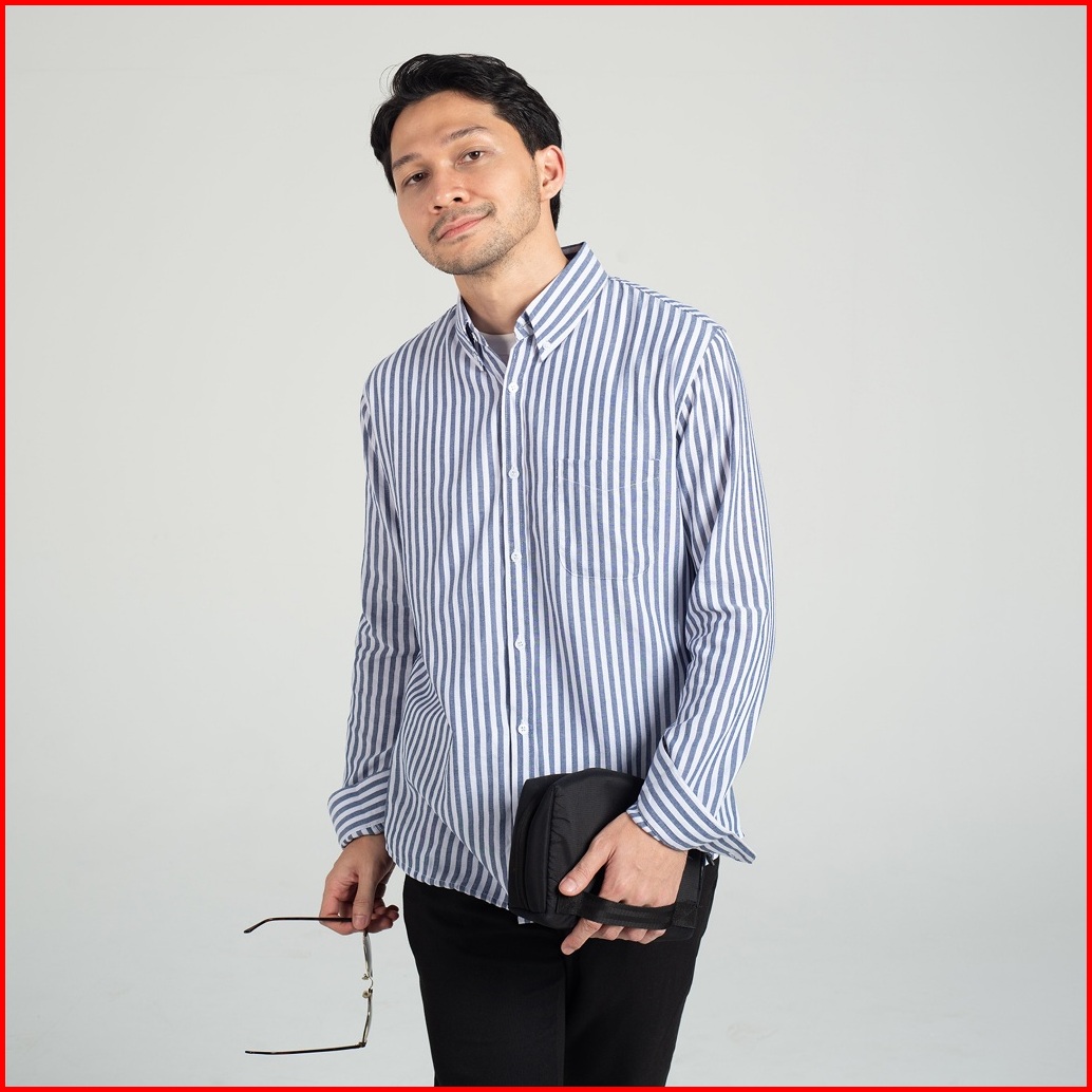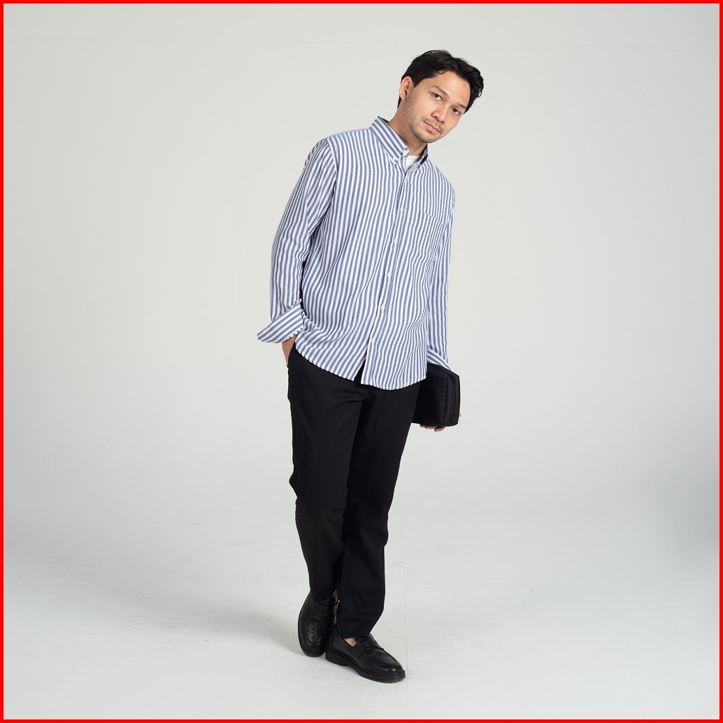 Kemeja Pria Garis Woodcutter Basic Butcher Stripe - Denim Blue Biru Lengan Panjang