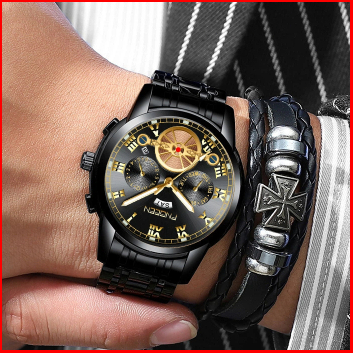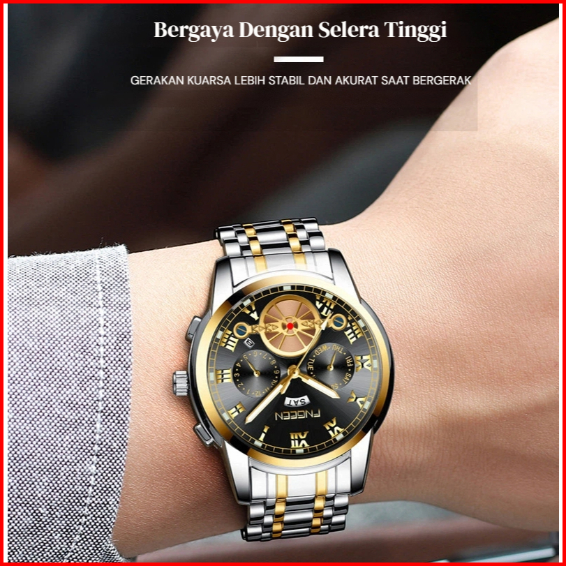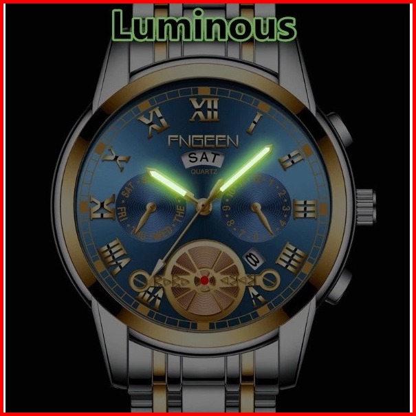 Fngeen 4001 Jam Tangan Pria Quartz Anti Air Santai Mewah Luminous Jam Tangan Tali Baja Serbaguna
