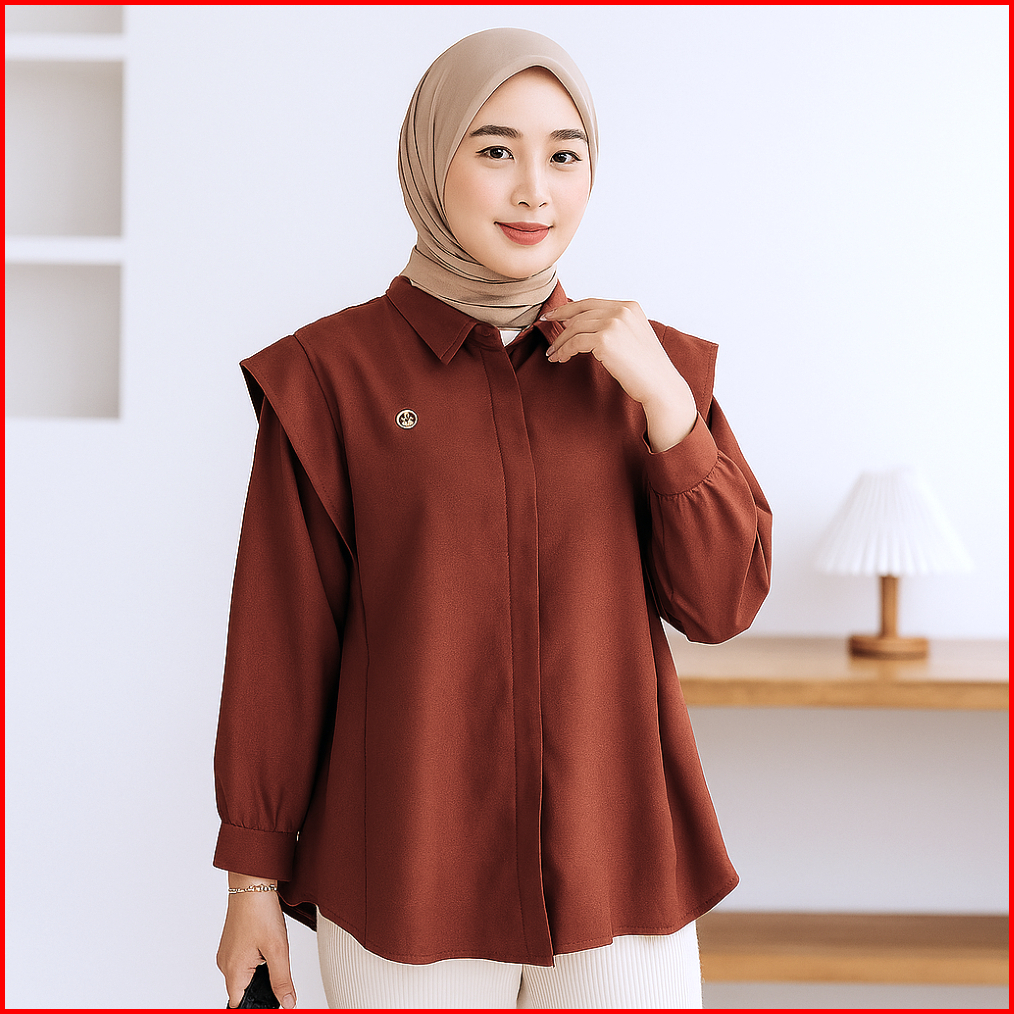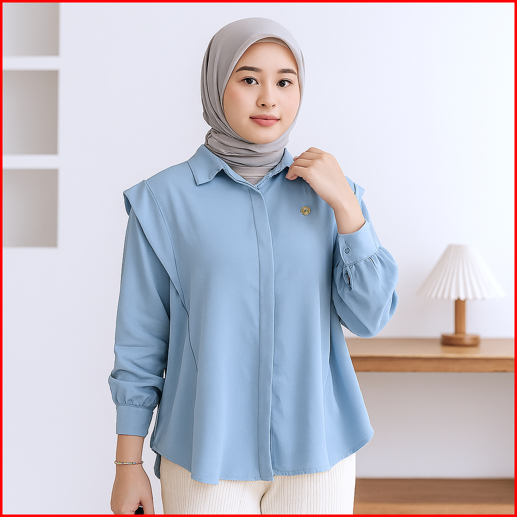 Blus Andini Lengan Panjang Polos Wanita Syakila Kekinian