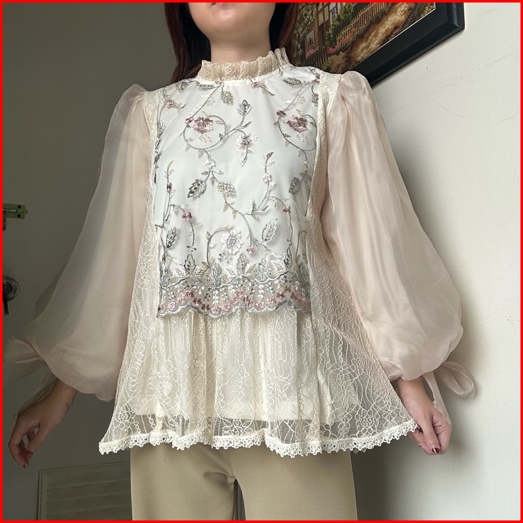 Nafa Bkk Top Blouse Kemeja Atasan Wanita Tulle Bordir Renda Korean Style Viral Pesta By Biel The Label
