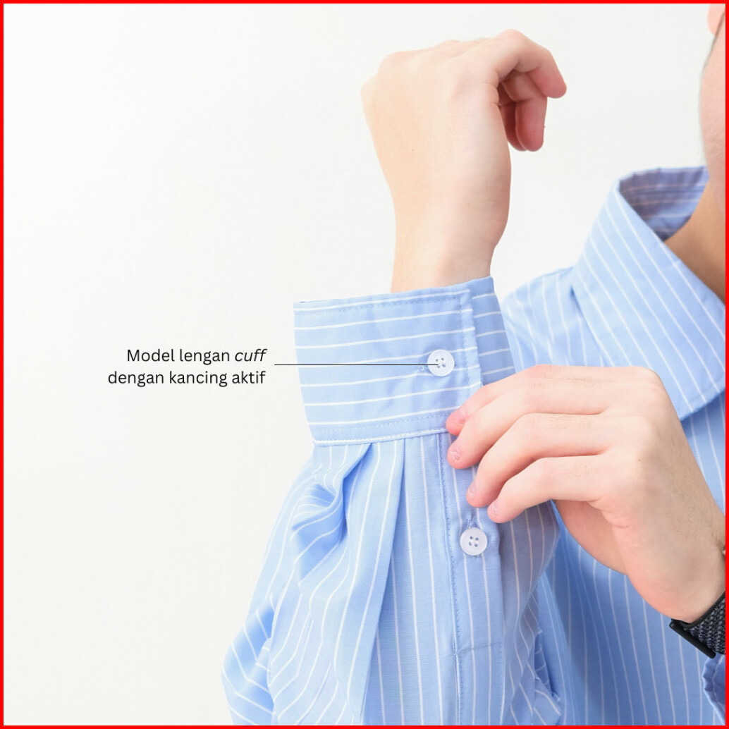 Sagi Men Sydney Stripes Oversized Longsleeve Shirt Kemeja Garis Garis Pria Lengan Panjang E-8603