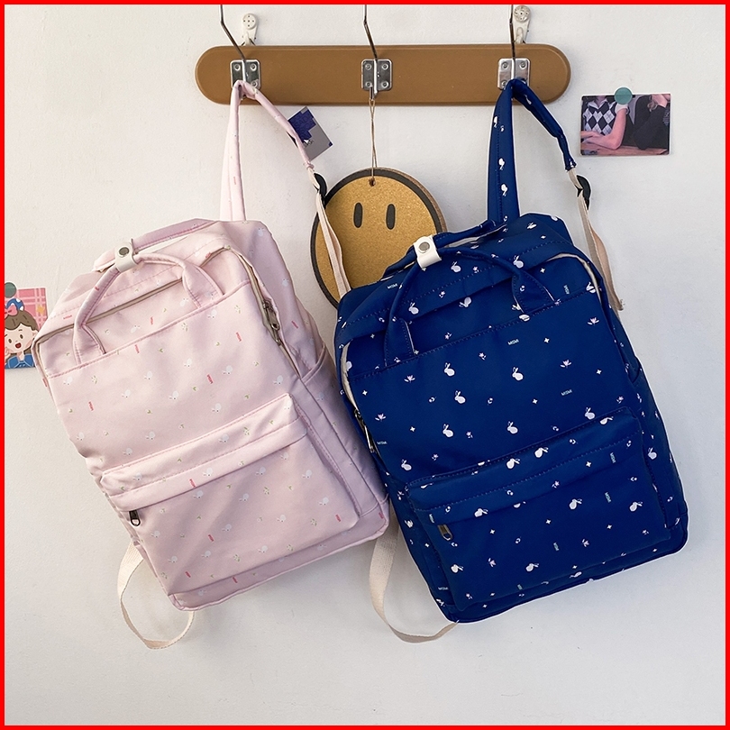 Mismi Itzel Bag Tas Ransel Wanita Style Kotak Korea Flower School Backpack Perempuan Trendy - 38i
