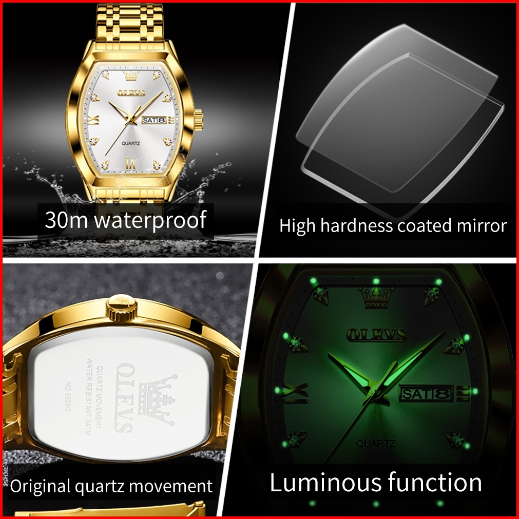 Olevs Jam Tangan Pria Anti Air Original Rantai Keren Terbaru Mewah Hitam Putih Luxury Stainless Steel Watch Men Model 55