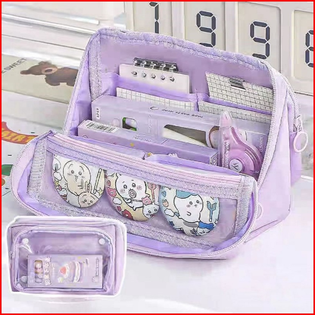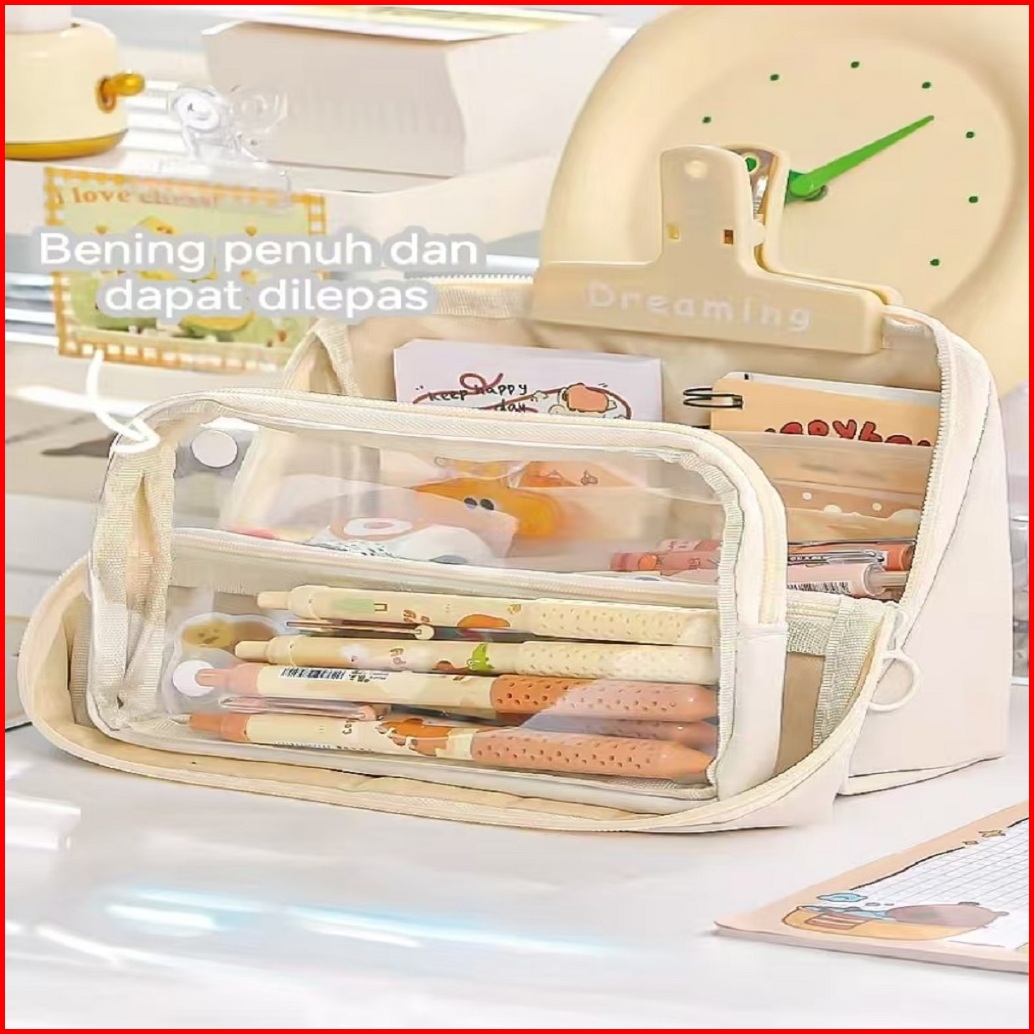 99khome Tempat Pensil Organizer Bening Besar Multifungsi Standing Pouch Estetik Serbaguna K1266