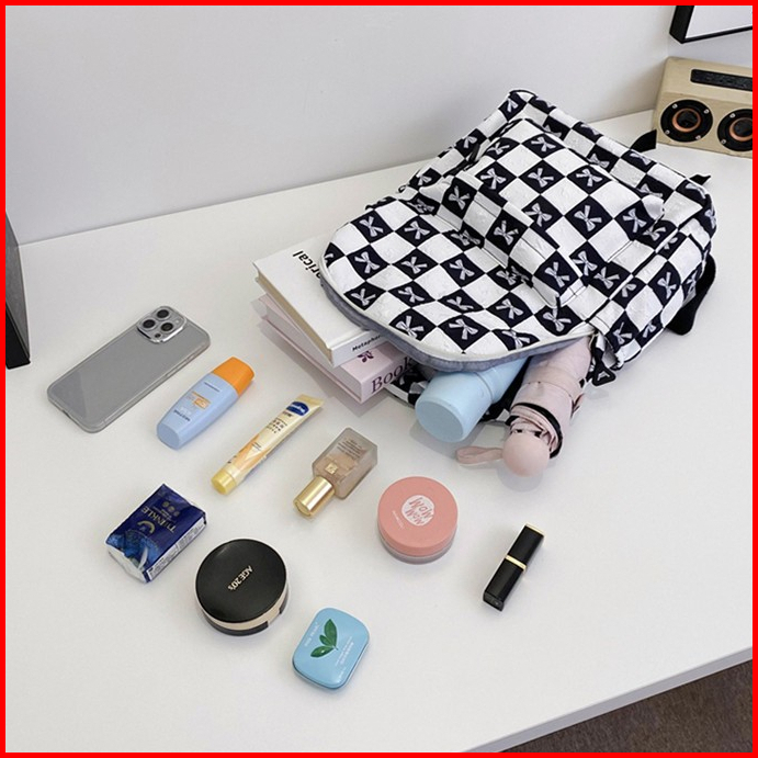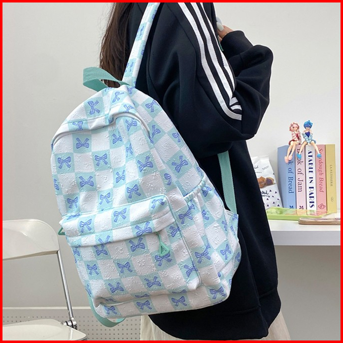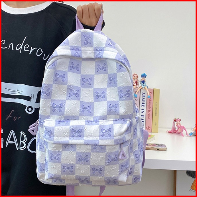 Mismi Linea Bag Tas Ransel Wanita Korean Ribbon Checker School Backpack Perempuan Stylish - 12l