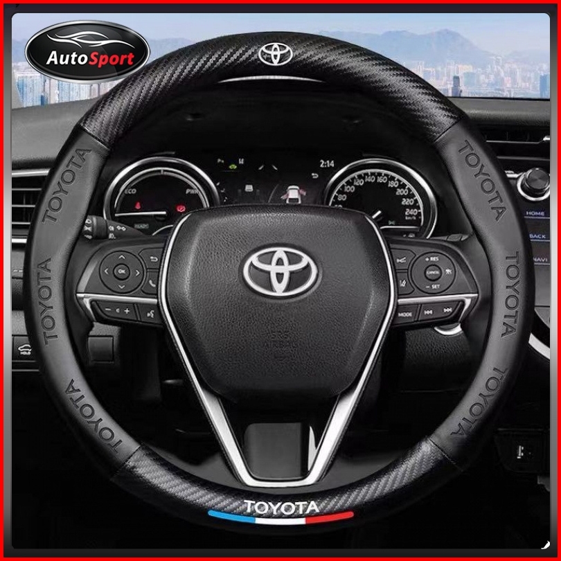 Sarung Stir Mobil Logo Brand Cover Steer Carbon Karbon Sport Kulit Domba Asli Original Toyota Premium Quality Emblem Aks