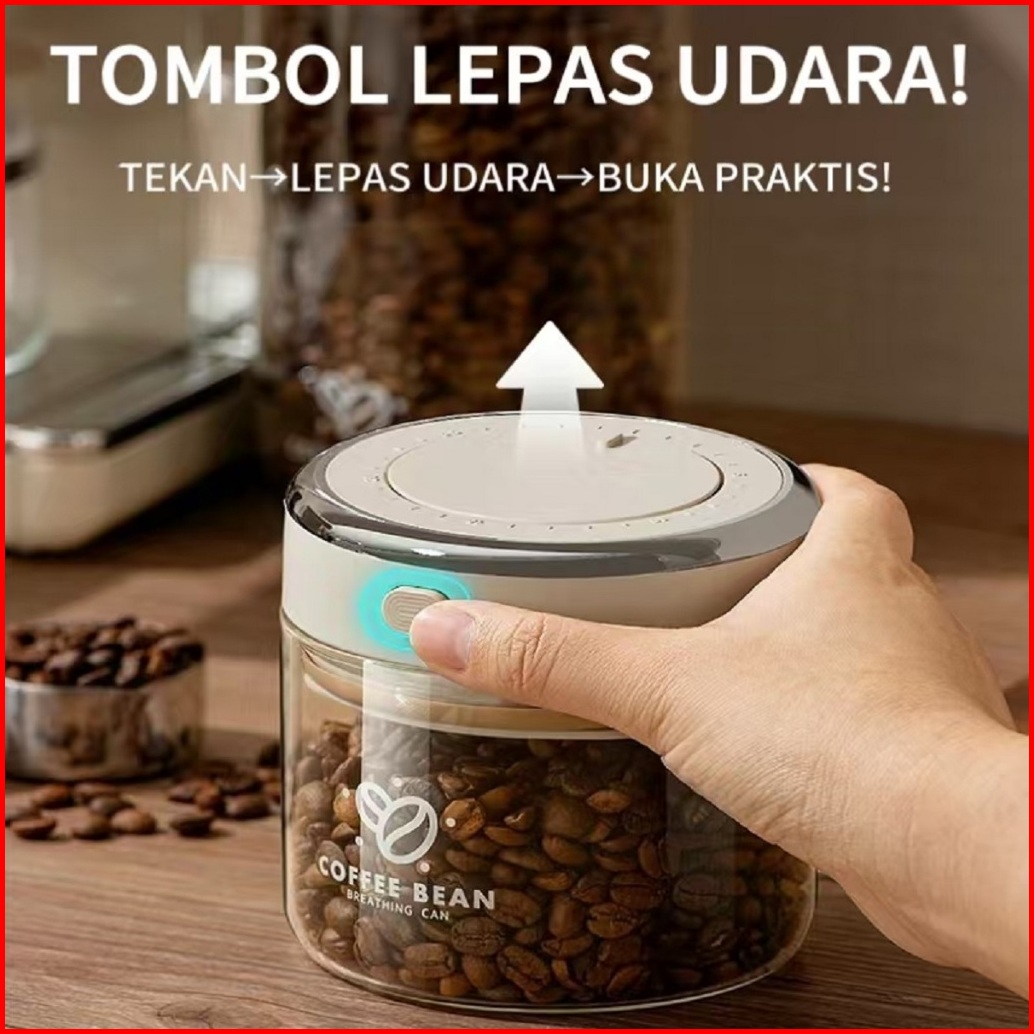 99khome Toples Kedap Udara Coffee Bean Jar Dengan Katup Wadah Penyimpanan Kopi Kue Kering K1273