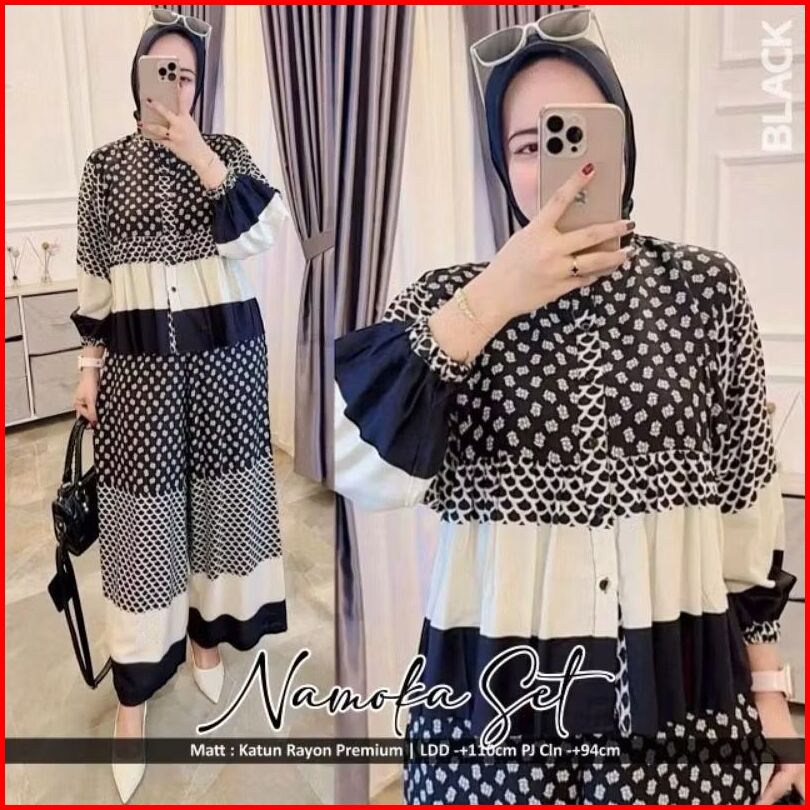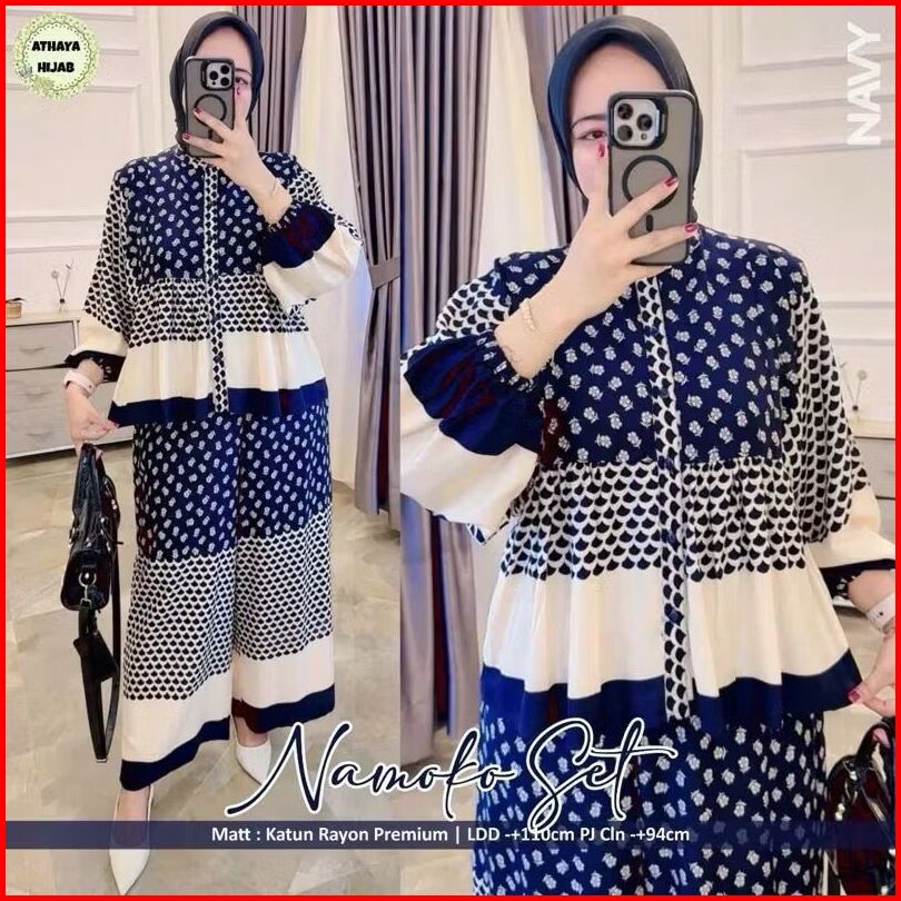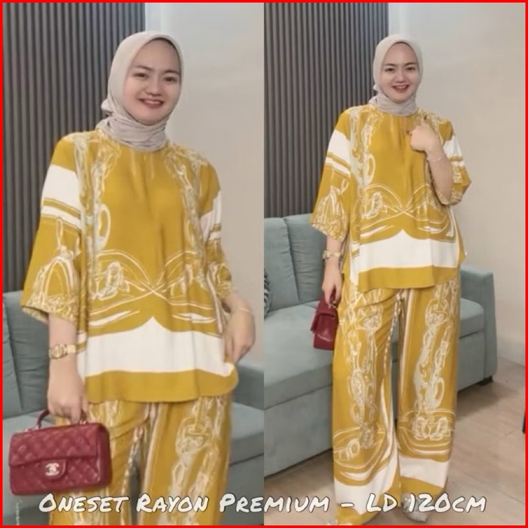 Setelan One Set Rayon Motife Terbaru Viscose Size M L Xl Xxl Wanita Kekinian Jumbo Busui