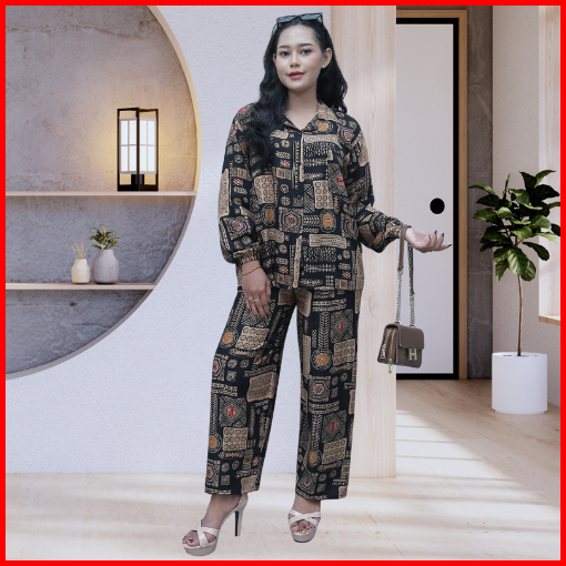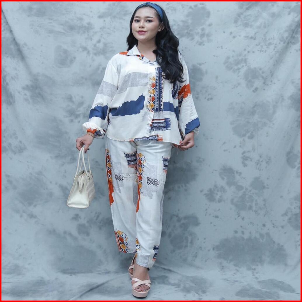 One Set Rayon Motif Kekinian Kemeja Dan Celana Kulot Rayon Motif Kekinian Simpel Polos Elegant
