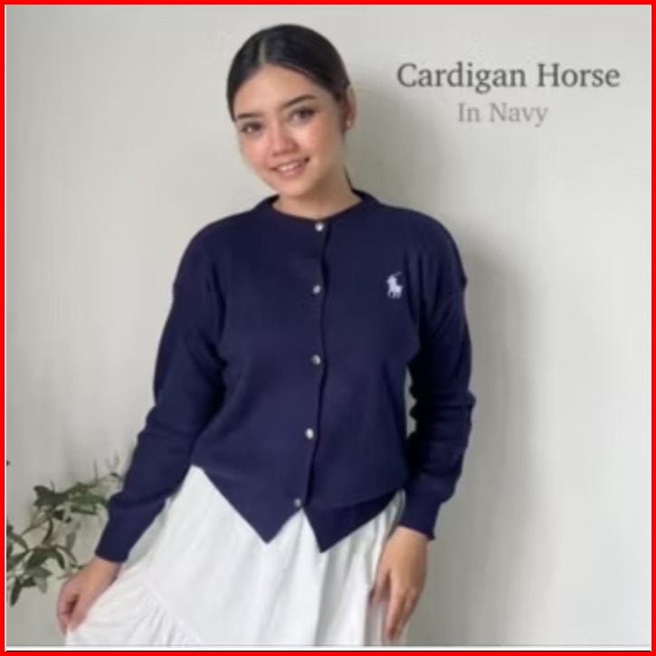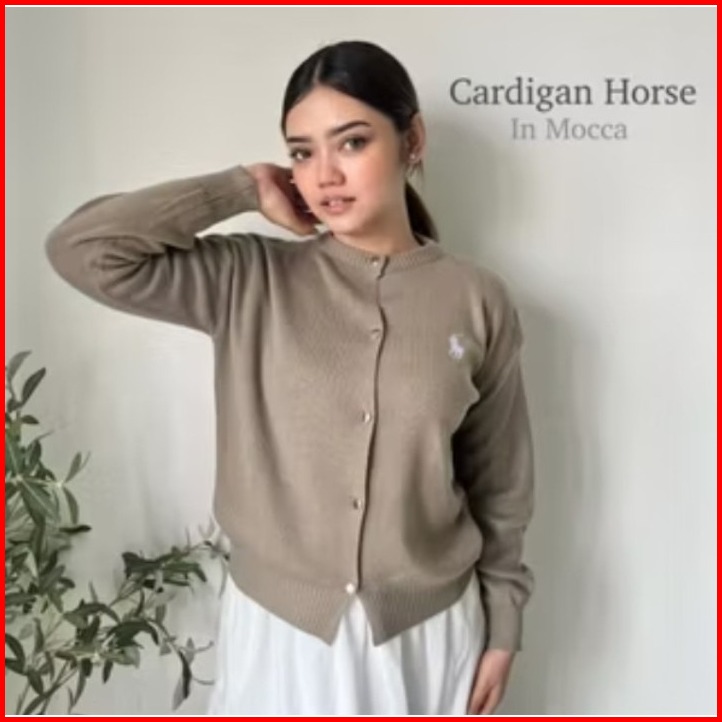 Cardigan Rajut Bordir Simpel Horse Acrilic Lembut