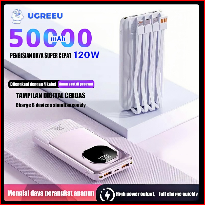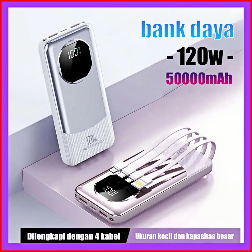 Power Bank 50000mah Super Fast Charging 120w With Type C Cable -lightning Cable Kapasitas Besar Pd 3.0 Led Senter Displa