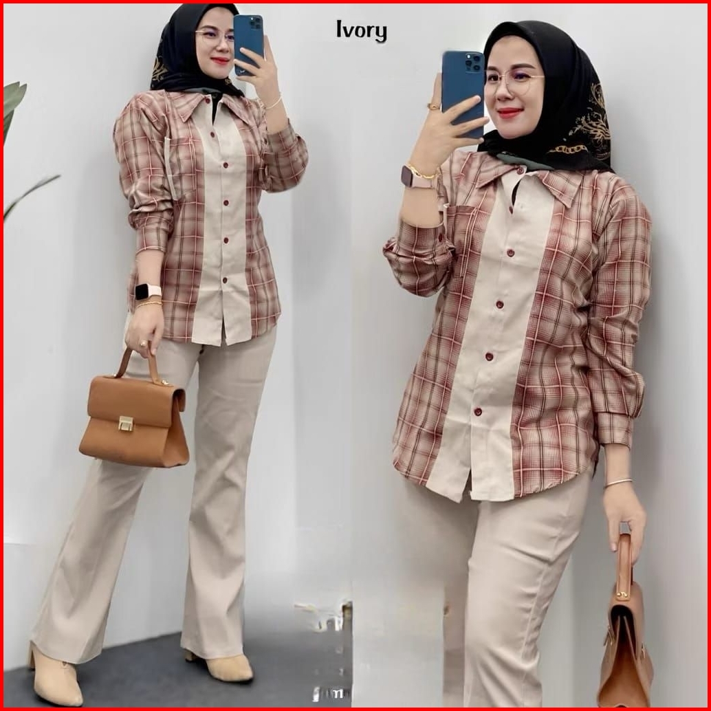 One Set Jubray Chinos Wanita Kekinian 2025 Stelan Haruka Kotak Premium Sctrect