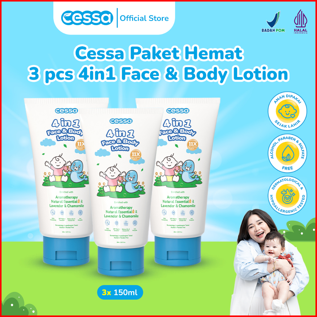 Cessa Paket Hemat 3 Pcs 4in1 Face Body Lotion - Melembabkan Menyehatkan Kulit Sih Kecil