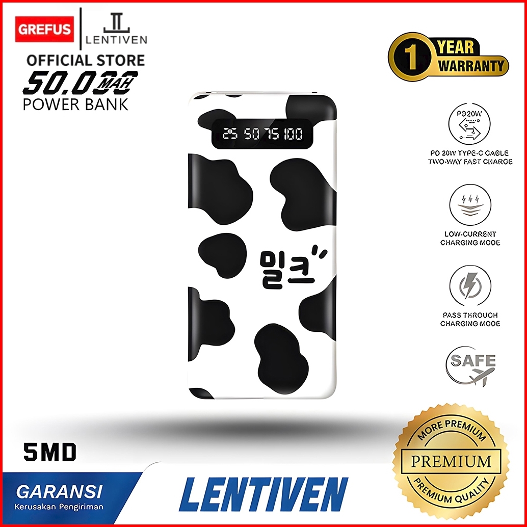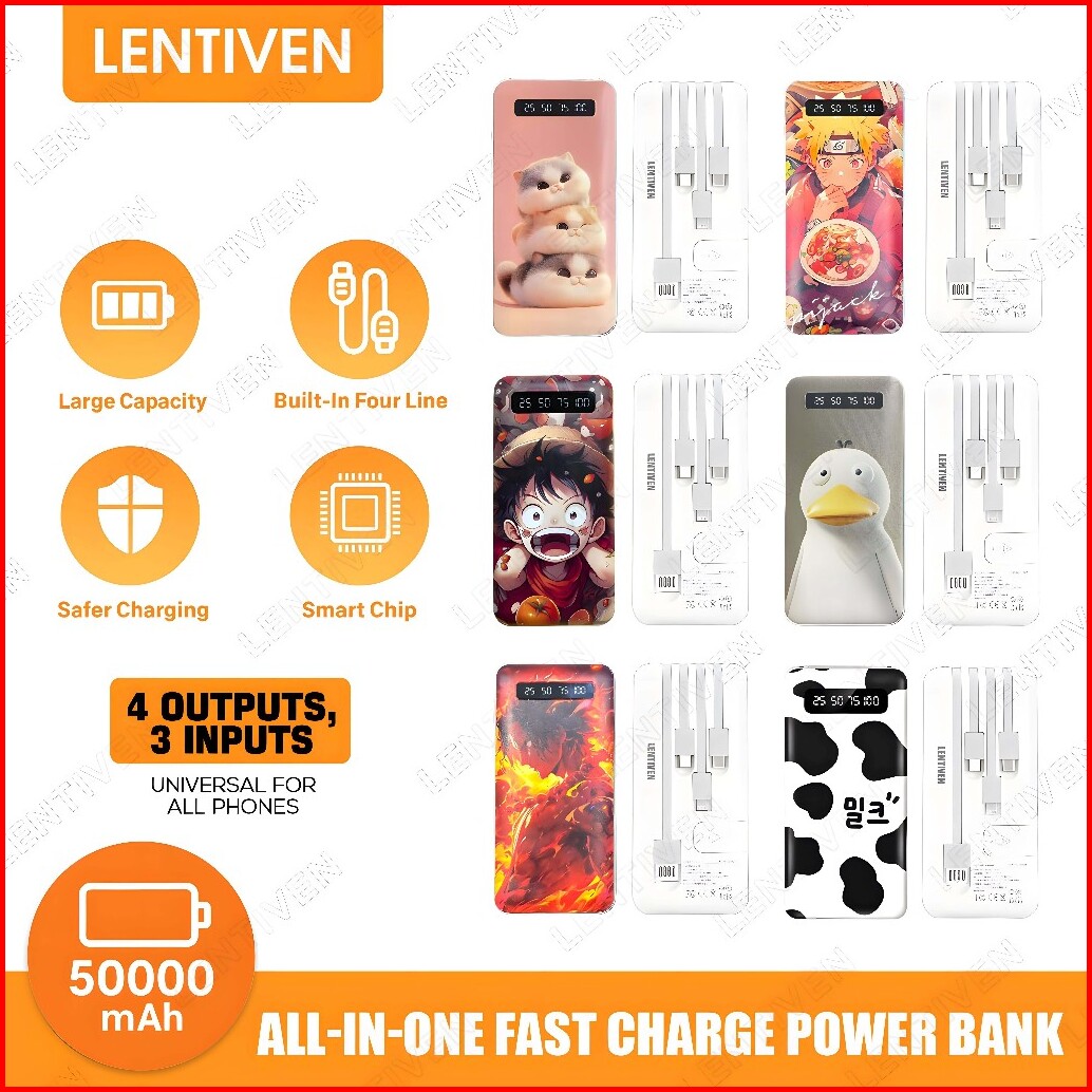Grefus Lentiven Powerbank 50000 Mah 4 Kabel Cute External Battery Mini Fast Charging