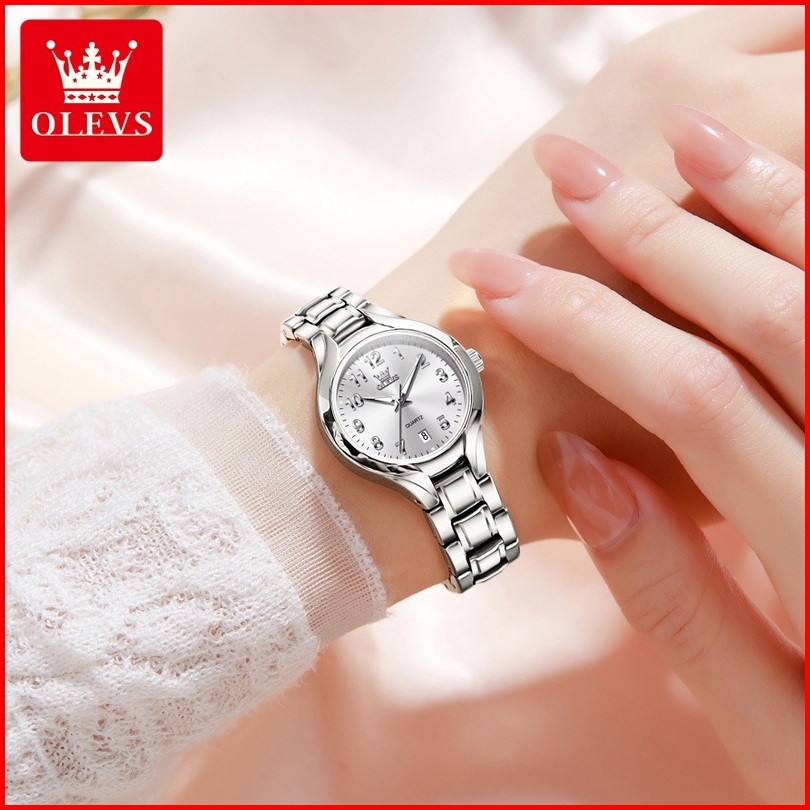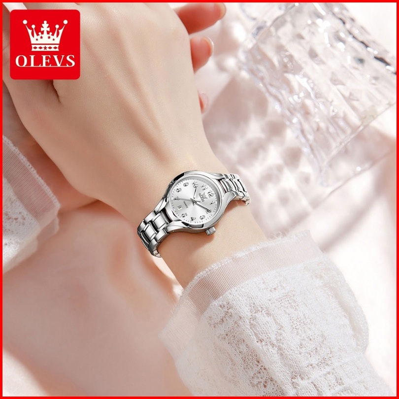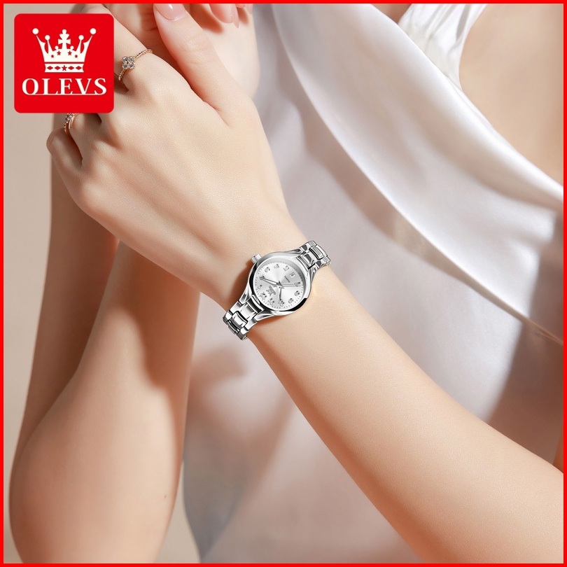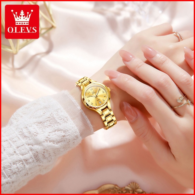 Olevs Jam Tangan Wanita Tahan Air Indah Kecil Bergaya Mewah Bercahaya Kuarsa Kalender Women Modle 3650