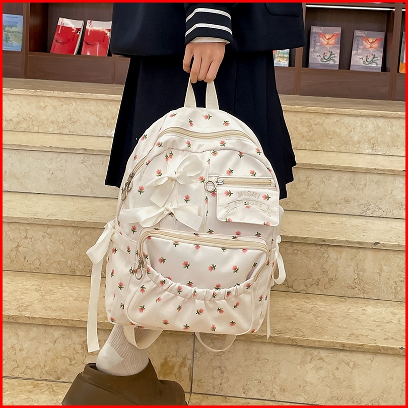 Mismi Urvi Bag Tas Ransel Wanita Stylish Flower Korean School Backpack Perempuan Trendy - 42u