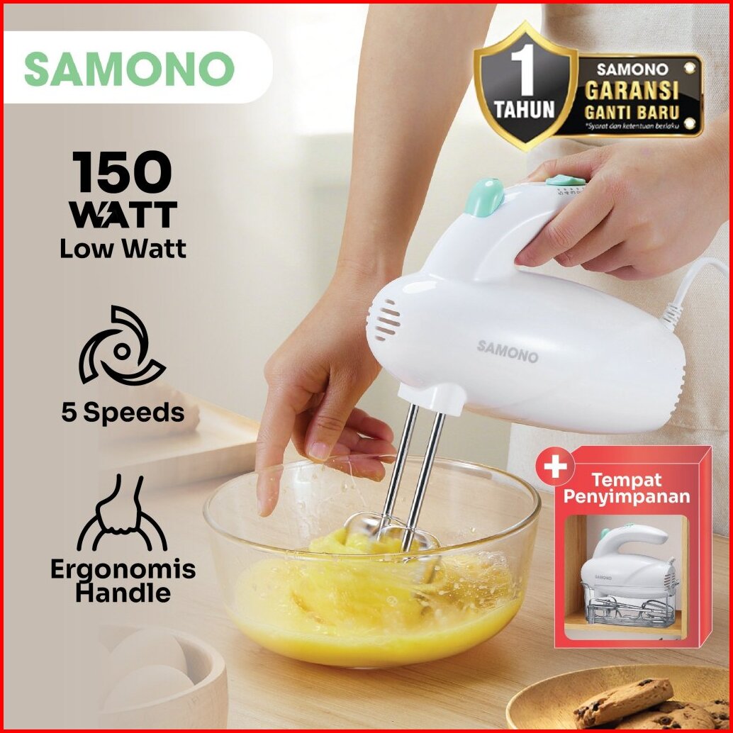 Samono Hand Mixer 150 Low Watt Tempat Penyimpanan 5 Kecepatan Garansi 1 Tahun Sw-hm150