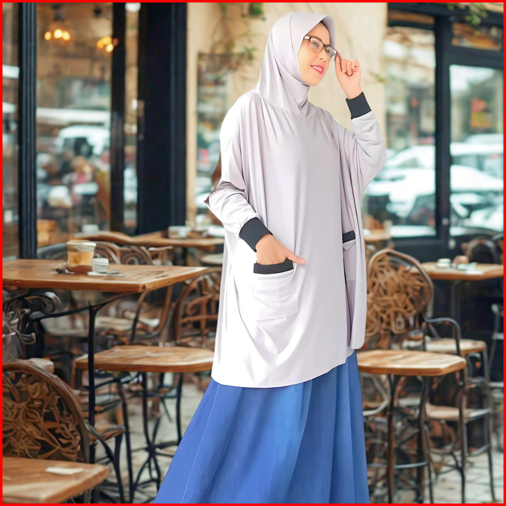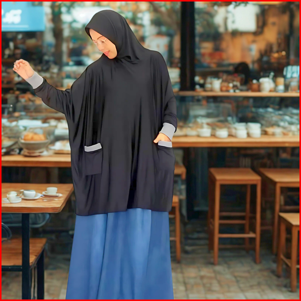 Atnihshijab - Hijab Khimar Syari Jumbo Lengan Jilbab Kerudung Sport Saku Syari Ribie