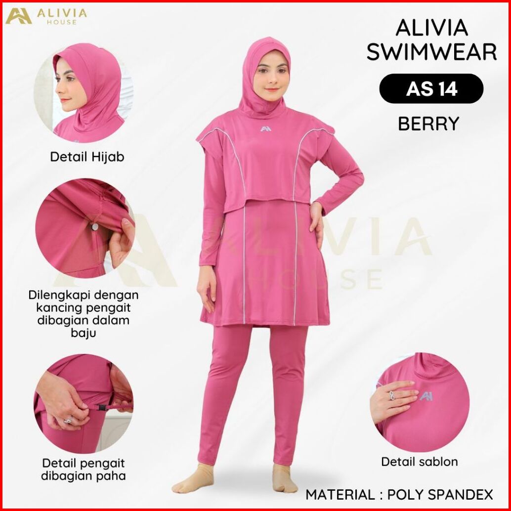 Alivia House - Alivia Swimwear As14 Baju Renang Muslimah Syari Poly Spandex Dewasa Wanita Muslim Perempuan Remaja Swimwe
