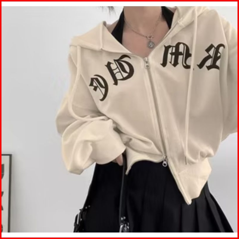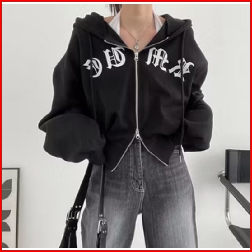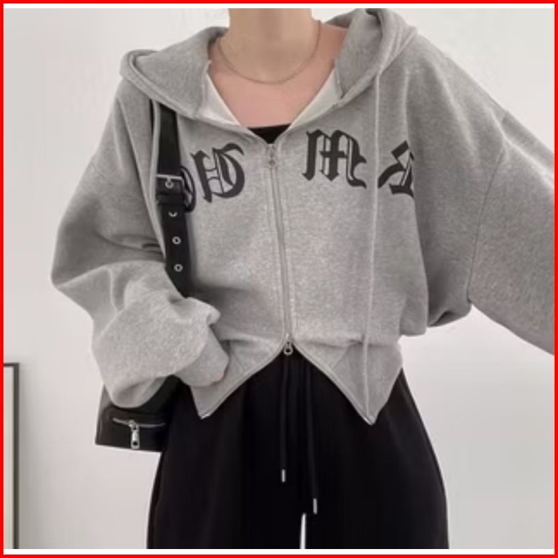 Double Zip Crope Amhd Jaket Wanita Fleece Lembut
