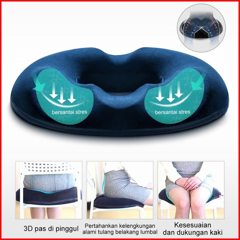 Bantal Alas Duduk Memory Foam Bentuk Donat Bantal Alas Kursi Bantal Anti Wasir Terapi Tulang Ekor