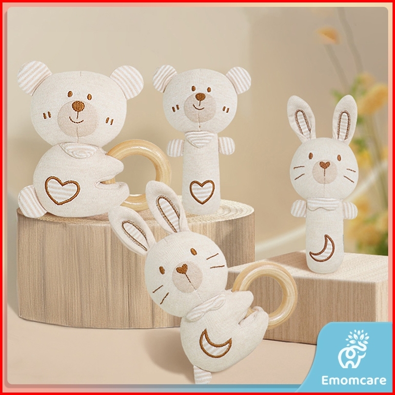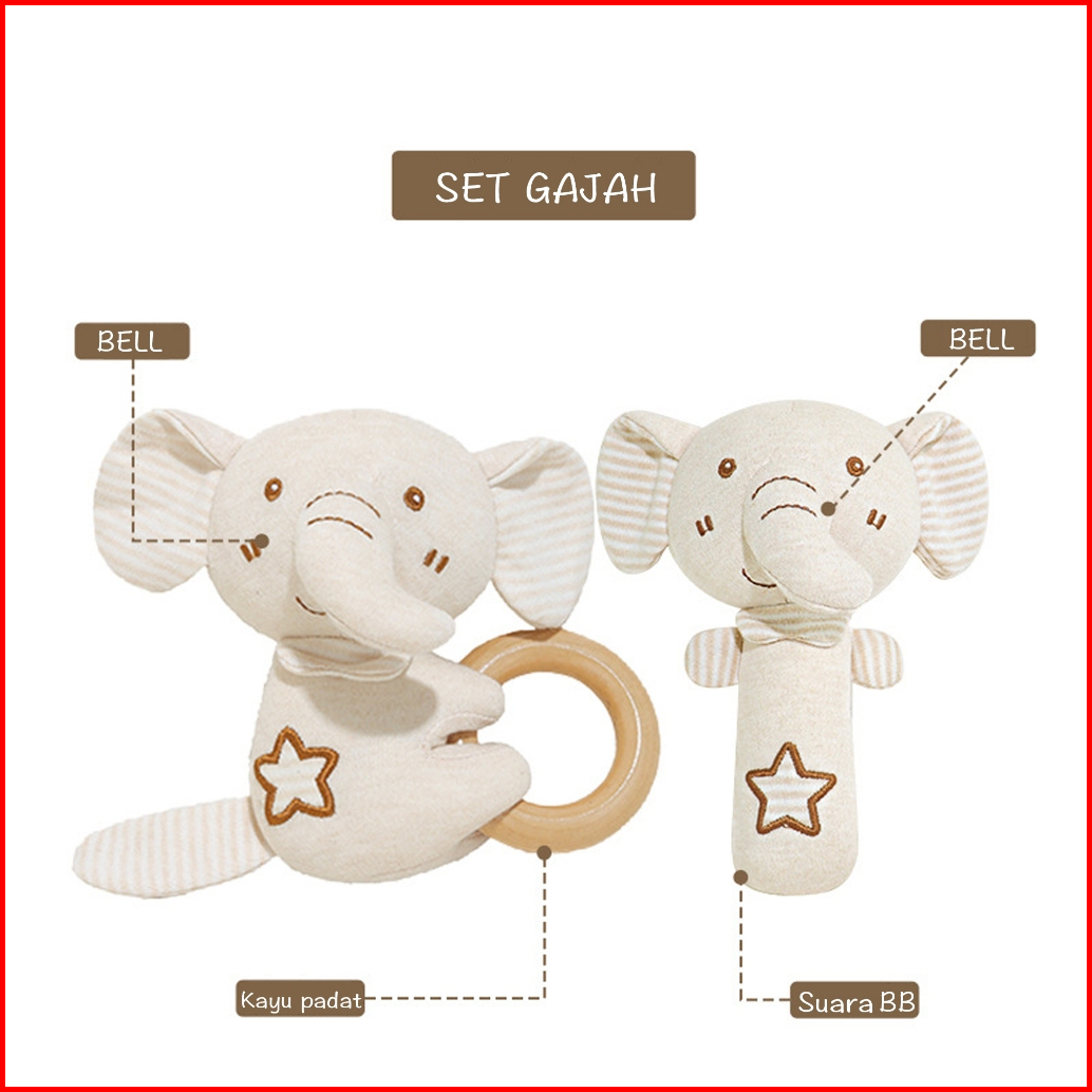 Set Mainan Boneka Tangan Baby Hand Rattle Toy Bibi Stick Boneka Genggam Bayi Bontang Bayi Bunyi Toet Kapas Organik