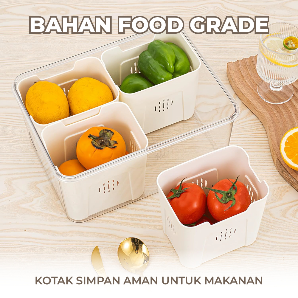 KEEP FRESH Kotak Penyimpanan Makanan Storage Toples Box Persegi Kulkas Dengan Sekat Untuk Buah Sayur / Kotak Penyimpanan