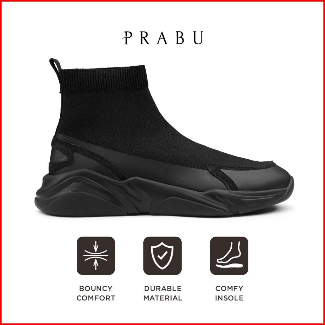 Prabu - Praja All Black Sepatu Slip On Pria Hitam