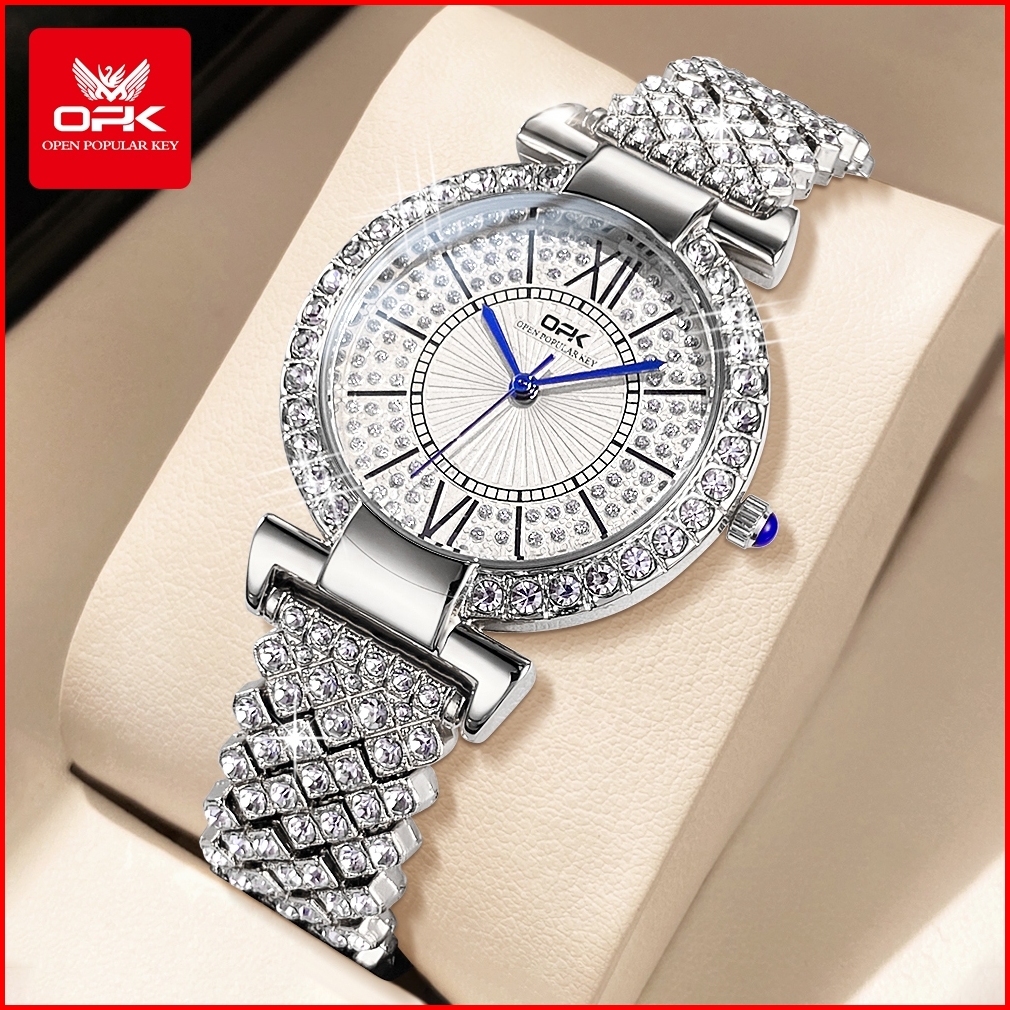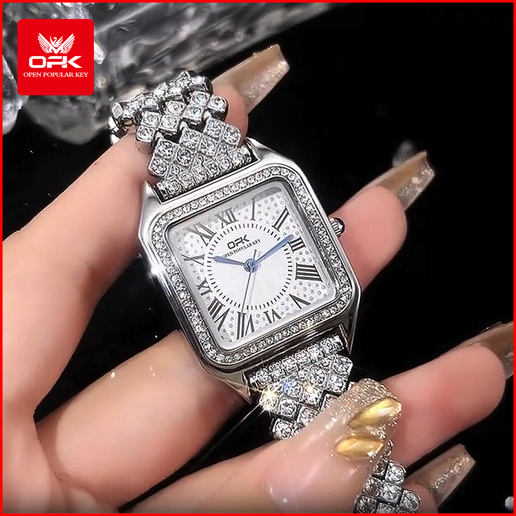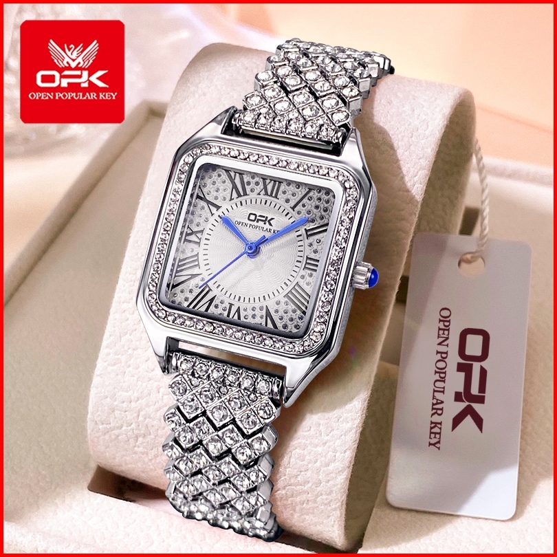 Opk Jam Tangan Wanita Anti Air Original Kecil Elegan Mewah Analog Square Tahan Putih Women Watch Model 8619
