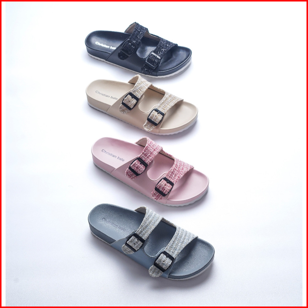 Christian Bale Olin Sandal Flat Puyuh Wanita Kekinian Kombinasi Ban Dua Anti Slip