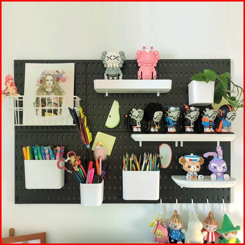 99khome Pegboard Papan Dinding Hole Board Tempel Dekorasi Kamar Rak Gantung Tanpa Paku Hitam K1167